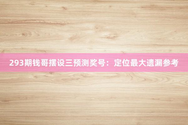 293期钱哥摆设三预测奖号:定位最大遗漏参考