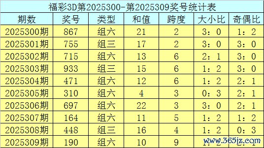 310期庄德福彩3D预测奖号:大小比奇偶比和值