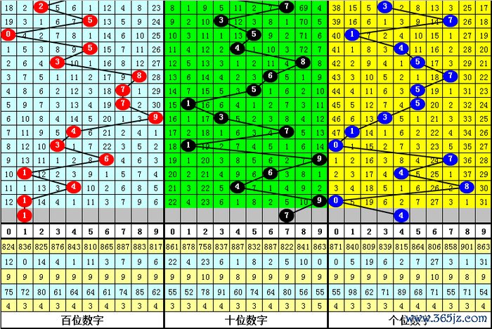 和值分析:和值近期永别较广,上期和值为10,本期看好和值高潮,参考和值12。
